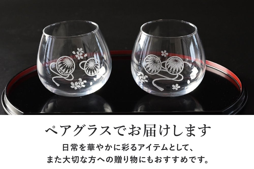 デザイングラス タンブラー 2個セット ごてんまりと桜模様 ペアグラス ミニグラス 食器 インテリア ギフト プレゼント 伝統工芸