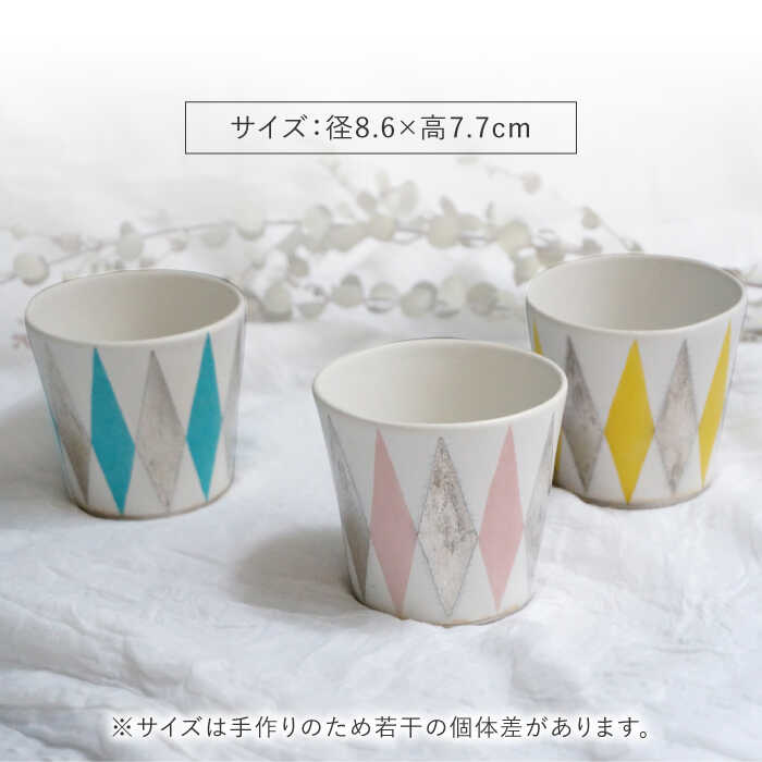 - 【ふるさと納税】【美濃焼】 陶芸家 「徳田吉美」 アルルカン カップ 3色セット ピンク/黄/青 【井澤コーポレーション】[TBP158]