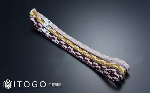 帯紐 伝統 工芸 着物 三分紐 伊賀 組紐 市松 ( なでしこ / 金茶 / 古代紫 )( 全長約128cm × 幅約0.9cm × 重量約14g ) 箱入り