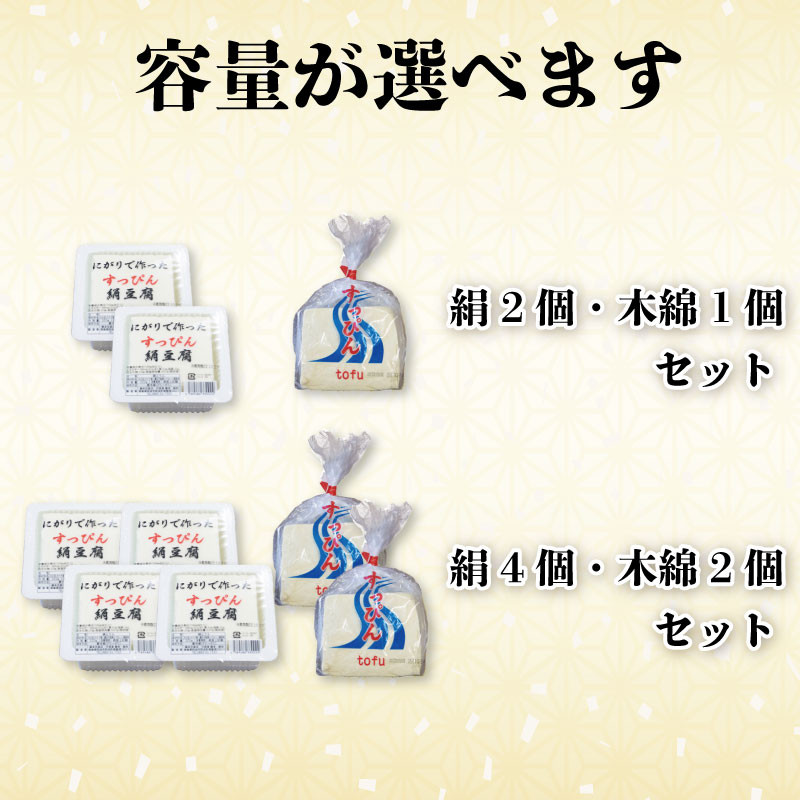 豆腐 3個 6個 セット 選べる 本格にがり すっぴん豆腐 絹豆腐 木綿豆腐 手作り 健康 おかず 味噌汁 冷奴 地元名物 サラダ 湯豆腐 ヘルシー ハンバーグ 藤本とうふ店 徳島 阿波市