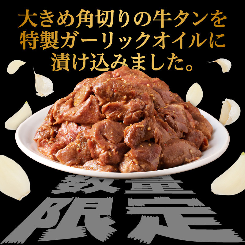 牛タン特製ガーリックオイル漬け / 肉 牛肉 牛タン タン ステーキ ガーリック オイル 味付き 味付け肉 角切り ブロック 簡単調理 外国産 佐賀県 玄海町 冷凍 送料無料