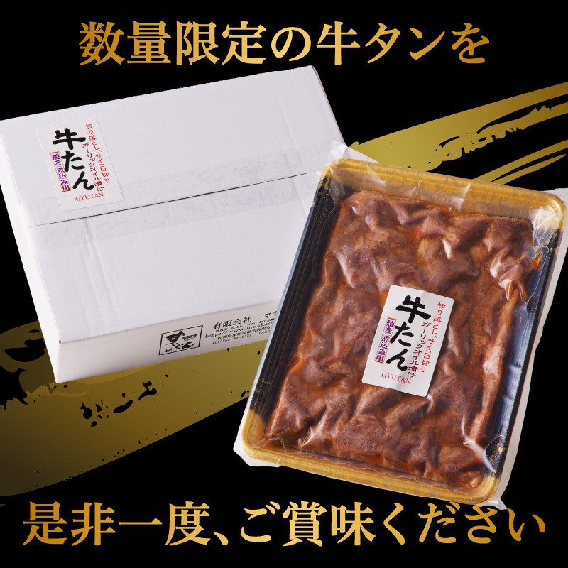 - 牛タン特製ガーリックオイル漬け / 肉 牛肉 牛タン タン ステーキ ガーリック オイル 味付き 味付け肉 角切り ブロック 簡単調理 外国産 佐賀県 玄海町 冷凍 送料無料