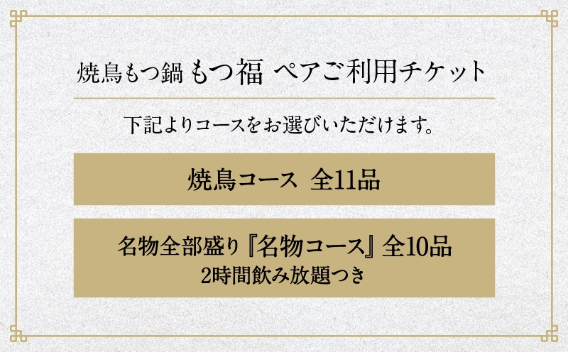 - 焼鳥もつ鍋もつ福 ペアご利用券 │ 東京 六本木 食事券 ペアチケット 都内 もつ鍋 焼き鳥 コース 体験型