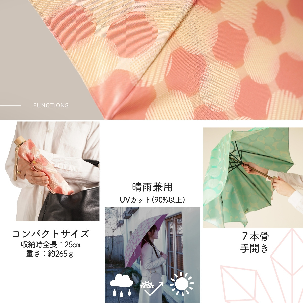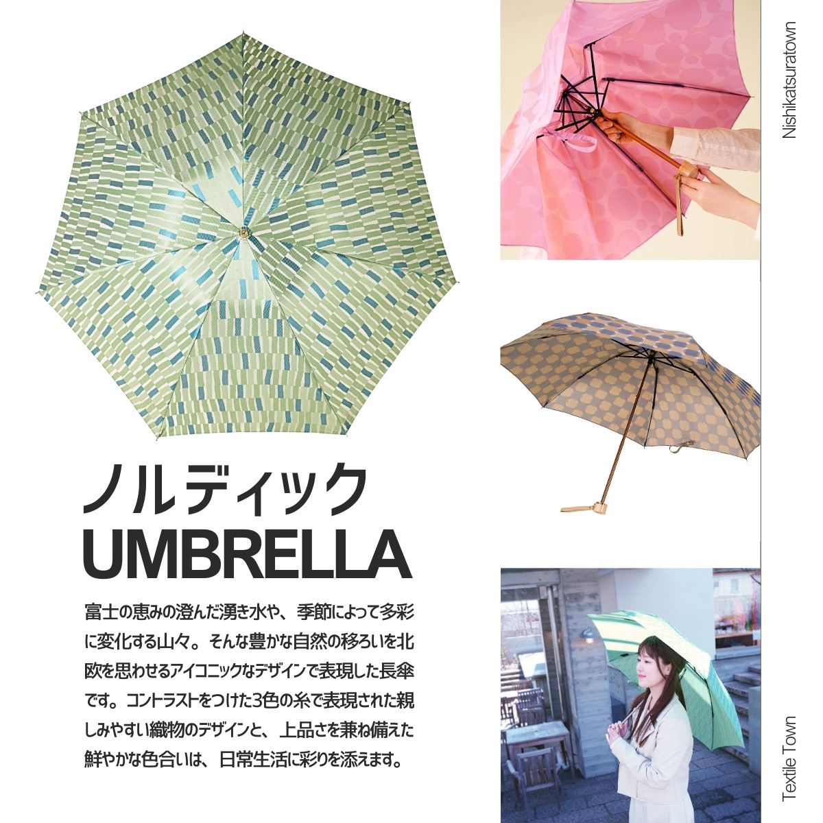 - 高級織物傘【婦人折りたたみ傘】ノルディック 北欧デザインをベースに山梨の自然を表現した晴雨兼用雨傘 / 雨具 雨傘 日傘 親骨55cm UVカット 7本骨 手開き UV加工 送料無料 山梨県 槇田商店【n0576_mak】