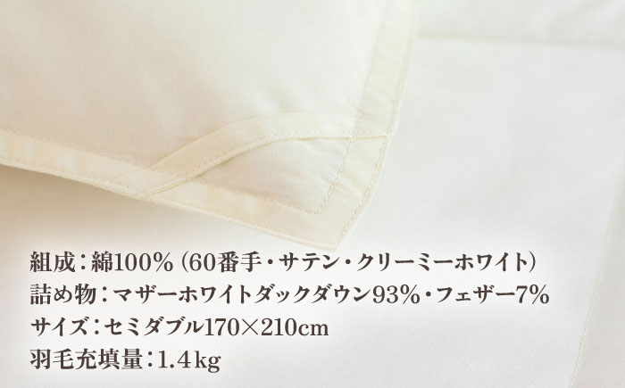 香川県高松市で製造 羽毛肌掛け布団SDL ダウン93% セミダブルロング 170x210サイズ