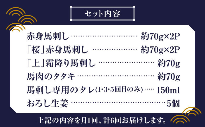 【全6回定期便】 「桜」 馬刺し 満喫セット 約420g【有限会社 九州食肉産業】 希少 特産品 国産 純国産 サシ 霜降り 上赤身 [ZDQ009]