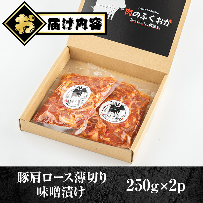 P79003 焼肉用豚肩ロース薄切り自家製味噌ダレ味付き(計500g・250g×2) 鹿児島 国産 豚肉 豚 肩ロース 薄切り 味噌 みそだれ おかず 味付け 冷凍 バーベキュー お弁当【肉のふくおか】