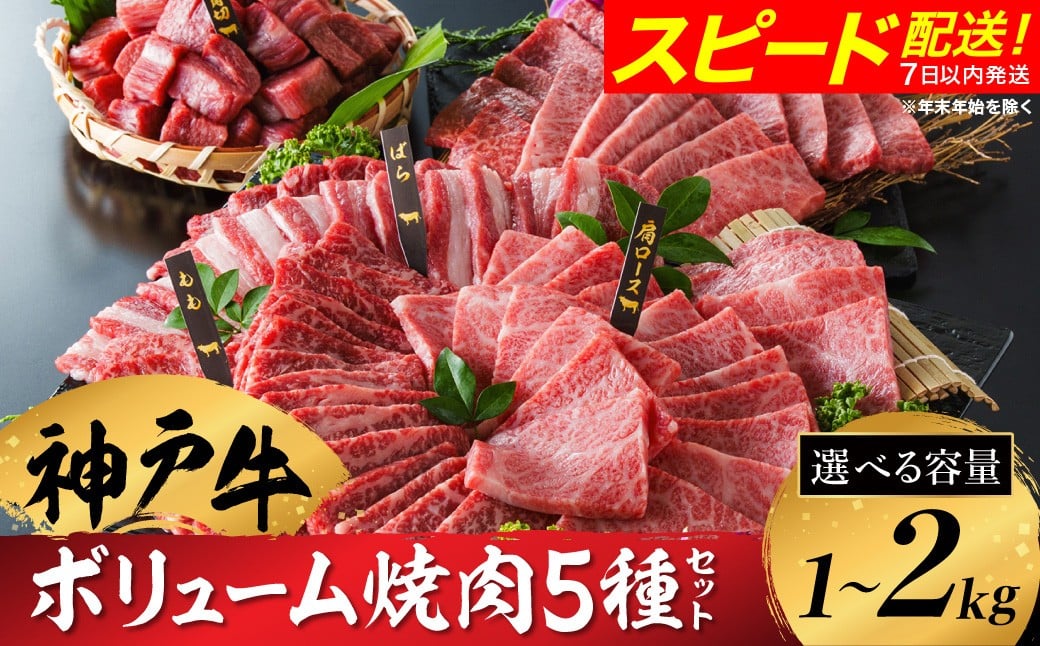 - 神戸牛 ボリューム焼肉セット 肩ロース 肩 モモ バラ 赤身角切り(1kg・2kg)/ 焼肉 食べ比べ 牛肉 小分け (200g×5種) 密着包装 赤身 霜降り国産牛 焼肉セット 焼き肉 冷凍 国産牛 ブランド牛 黒毛和牛 神戸ビーフ 化粧箱入り ギフト 【帝神志方ミート】