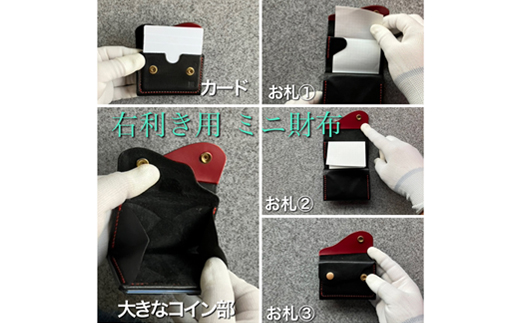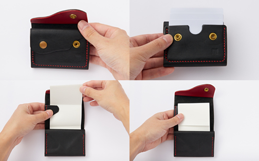 <ちっこくても使い易いミニ財布no.7>右利き黒革に赤糸手縫い フロント2分割【1419694】