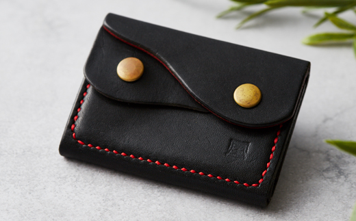 - <ちっこくても使い易いミニ財布no.7>右利き黒革に赤糸手縫い フロント2分割【1419694】