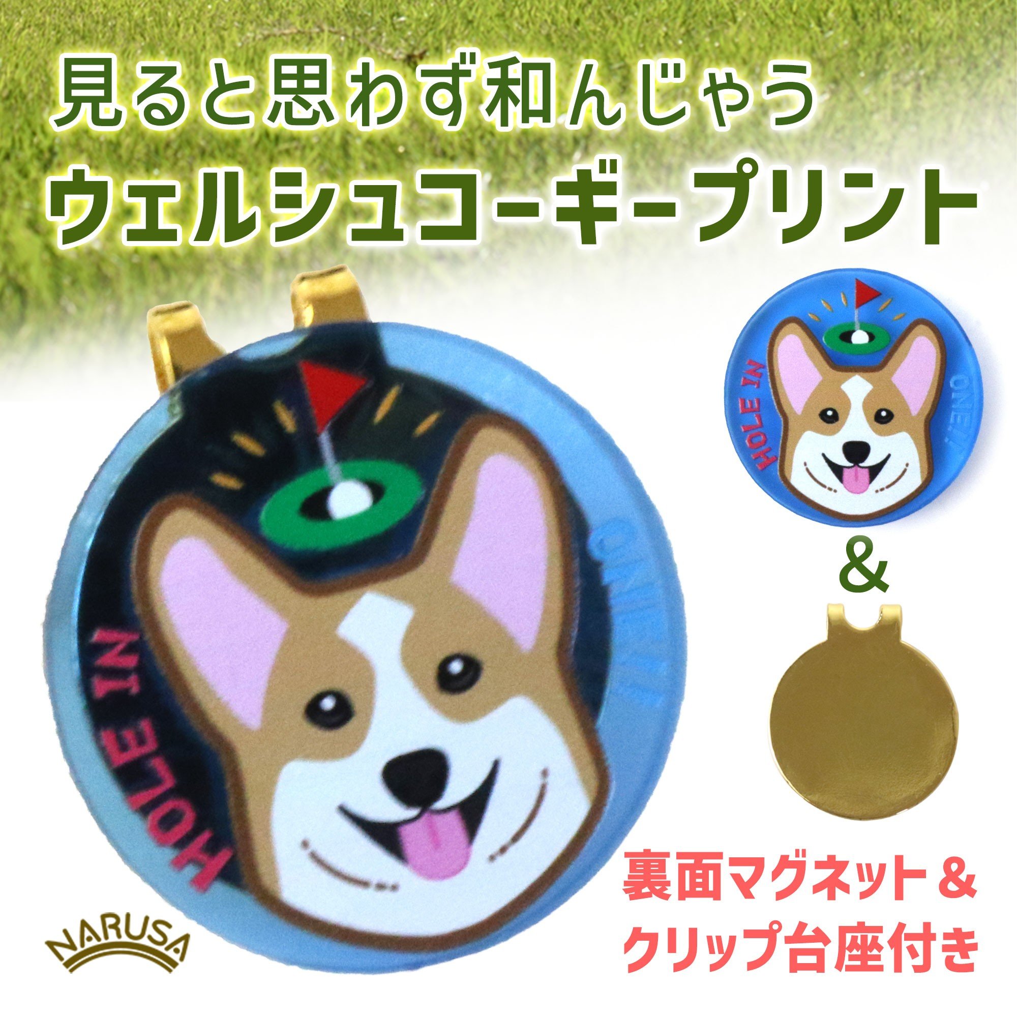 - NARUSA コーギー ゴルフマーカー マグネット・クリップ付 ≪選べるカラー≫ ブルー イエロー イエローグリーン ミラー 蛍光アクリル 見つけやすい ゴルフボールマーカー 見失わないマーカー ゴルフ ゴルフ用品 ゴルフコンペ ゴルフマーカー 愛知県 豊橋市