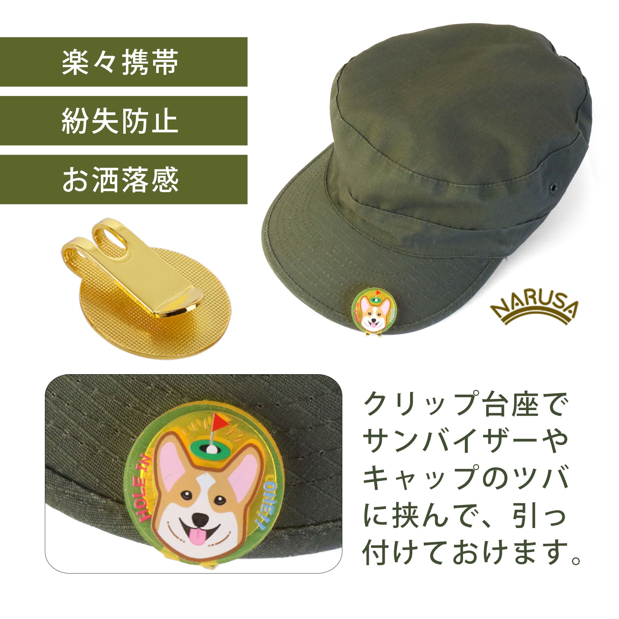 NARUSA コーギー ゴルフマーカー マグネット・クリップ付 ≪選べるカラー≫ ブルー イエロー イエローグリーン ミラー 蛍光アクリル 見つけやすい ゴルフボールマーカー 見失わないマーカー ゴルフ ゴルフ用品 ゴルフコンペ ゴルフマーカー 愛知県 豊橋市