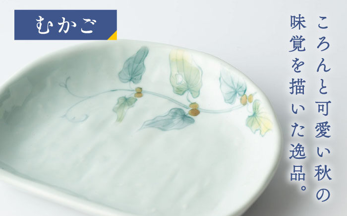【中島陶芸】半月取皿 野の花 3枚セット(むかご・山帰来・山ぶどう) [UCG018]