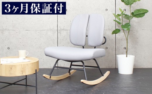 - [3ヵ月保証付き]ロッキングチェア 合皮 揺れる椅子 グレー 天然木 プレミアム AKU105657692