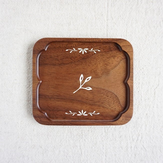- 唯一無二のデザイン 【貝象嵌】貝象嵌 花皿 ウォールナット 岩手県 北上市 (D0444)夢工房 小皿 小物入れ インテリア ナチュラル 天然 無垢材 木材 貝象嵌 プレゼント 贈り物 お祝い 誕生日 母の日 クリスマス 敬老の日 お茶