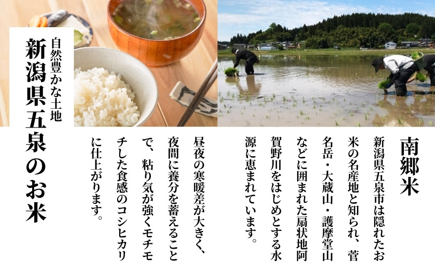 令和7年産 新米 【 定期便 12ヶ月 】 米 10kg ( 5kg × 2袋 ) × 12回 五泉産 コシヒカリ 100% 南郷米 特別栽培米 | 白米 精米 こしひかり お米 新潟県 五泉市 ファームみなみの郷