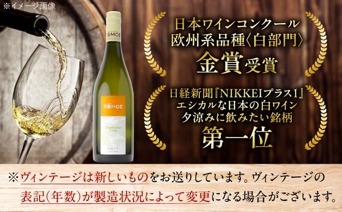 【全3回定期便】白ワイン TOMOE シャルドネ クリスプ 白ワイン 辛口 750ml 1本 ワイン 受賞 ギフト ぶどう 葡萄 ブドウ 爽やか お酒 地酒 洋酒 広島県三次市産 フルーツ フルーティ ご当地 記念日 誕生日 人気 おつまみ 三次市 / 広島三次ワイナリー[APAZ054] 日本ワイン 送料無料 定期便 三次 29000円 3万円以下 酒 辛口 国産 記念日