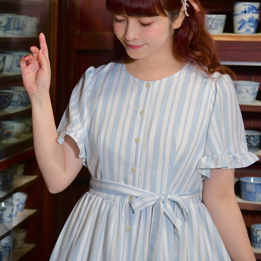 - 先行予約 アトリエ小町 ワンピース (renka ep2)ストライプ・サックス フリーサイズ 青木美沙子さんコラボ [服 ロリータ ロリータファッション スイートロリータ 可愛い レディース 姫 お姫様 ストライプ ]
