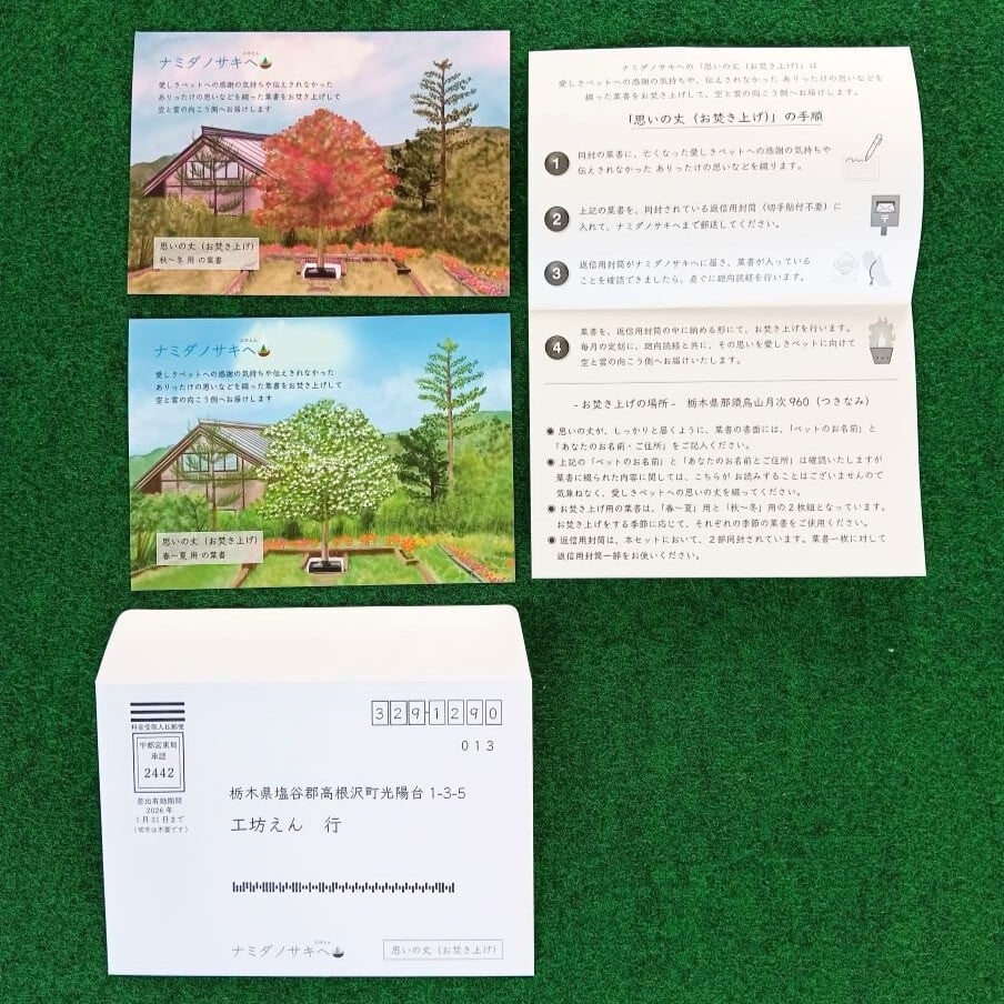 - 4-1 ペット供養お焚き上げ用ハガキセット(春・秋彼岸) | ペット 供養 動物供養 追悼 ハガキ 葉書 手紙 お焚き上げ 樹木葬 小型