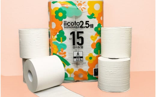 - トイレットペーパー iicoto2.5 ダブル 72ロール 4500m(6ロール×12パック×62.5m)