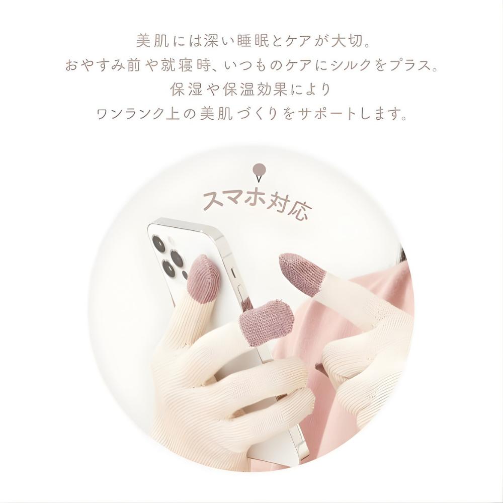 絹のおもてなし おやすみシルク手袋 1双【選べる色】オフホワイトor ピンク /シルク レディース 婦人 美肌ケア 美容 就寝 スマホ スマートフォン対応 高級シルク ギフト【mika-oya-oyasumi】