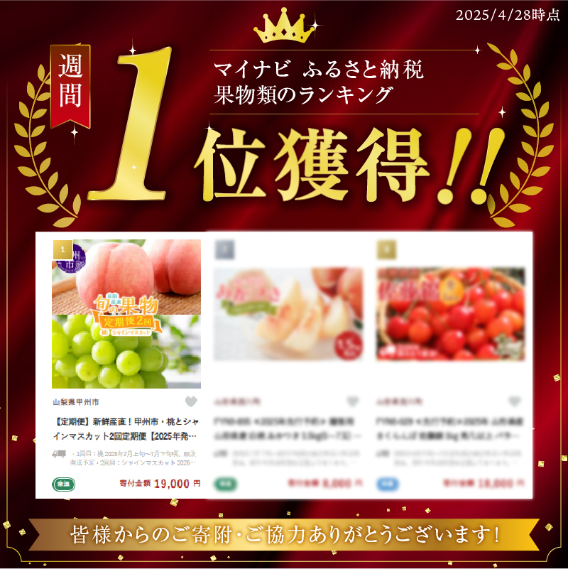 - 【定期便】新鮮産直!甲州市・桃とシャインマスカット2回定期便【2026年発送】(KSF)B16-126