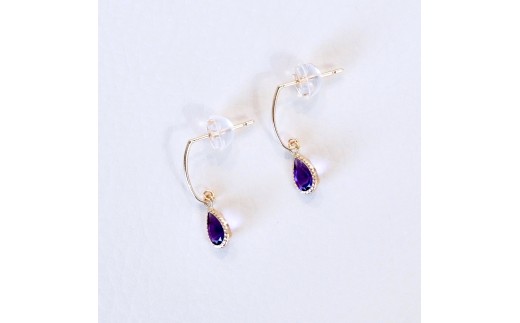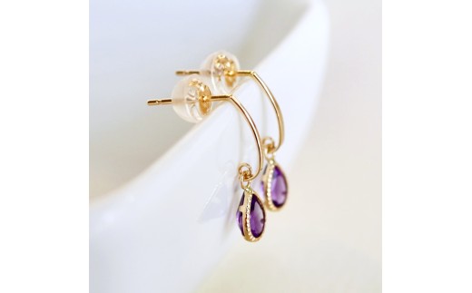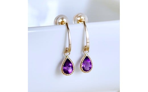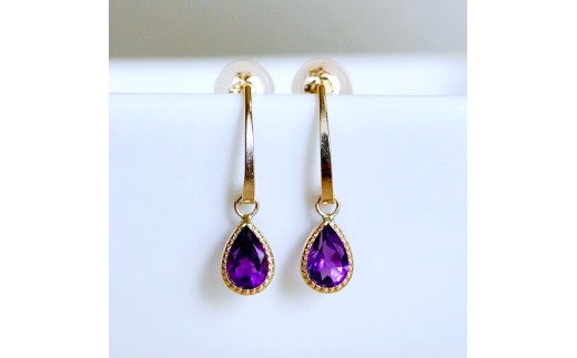 - K10YG(10金) イエローゴールド 揺れる アメシスト アンティーク ピアス 保証書付 SR-2223-1 242-043-a