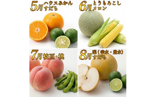 フルーツ & 野菜 定期便 選べる 3回 果物 季節 旬 詰め合せ 国産 おまかせ 産地直送 シャインマスカット いちご みかん デコポン 桃 メロン 八朔 梨 柿 あたご柿 徳島