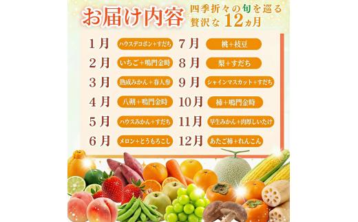 - フルーツ & 野菜 定期便 選べる 3回 果物 季節 旬 詰め合せ 国産 おまかせ 産地直送 シャインマスカット いちご みかん デコポン 桃 メロン 八朔 梨 柿 あたご柿 徳島