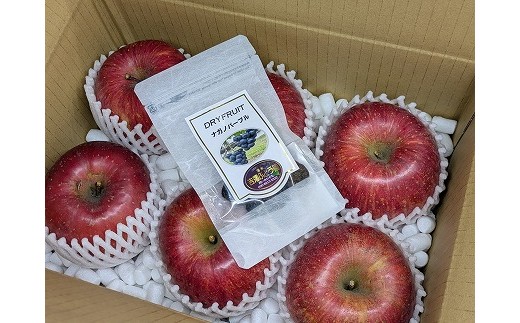 - 担当者おすすめ「味覚の里なかがわ」の旬のくだもの(サンふじ)干しぶどうセット(6玉 2Kg弱 りんご訳あり 不揃い バラ詰め 食べきり)