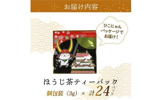- ほうじ茶 ひこにゃんティーバック 計24パック 個包装 近江産 自家焙煎 ひこにゃんパッケージ お茶 茶 日本茶 ティーバック ティーパック ティー パック おちゃ ほうじちゃ 簡単 便利 持ち運び 国産 政所 銘茶 日本茶専門店 専門店 滋賀県産 かわいい ギフト 滋賀 彦根