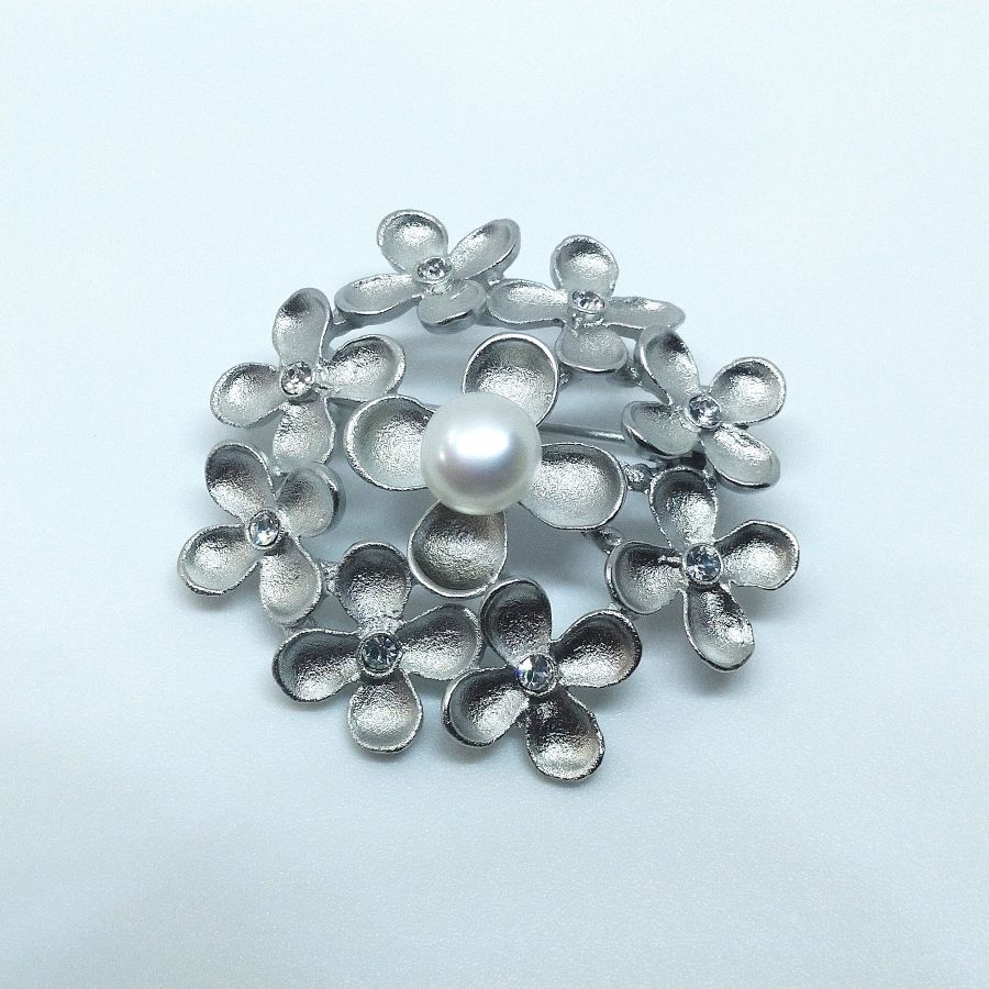 【ふるさと納税】アコヤ真珠 銀色ブローチ (8mm珠) 真珠 パール ブローチ シルバー フォーマル パーティー 結婚式 冠婚葬祭 大分県 佐伯市【AF24】【(有)オーハタパール】