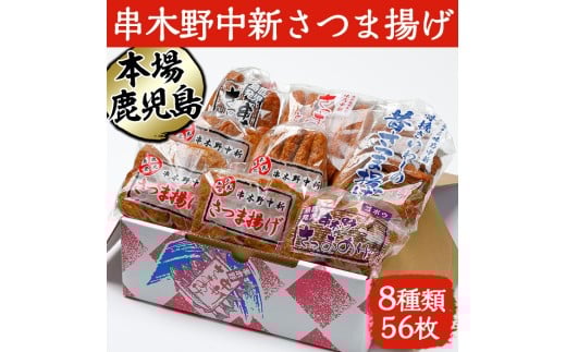 中新 さつま揚げ 8種 56枚 食べ比べ 棒天 や とうふ天 などの定番 さつま揚げ から ニラごぼう や ネギ軟骨天 を加えたバラエティ豊かな詰合せ!冷蔵 串木野名物 地酒と豆腐たっぷりの薩摩揚げ つけ揚げ 練り物【A-1555H】