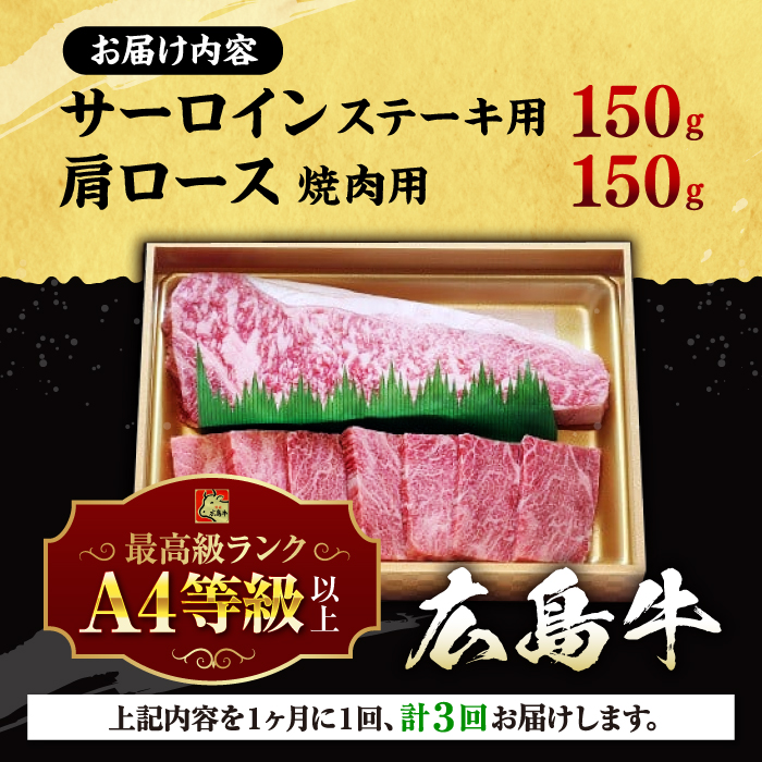 【全3回定期便】広島 和牛 贅沢セット 300g (肩ロース 焼肉用 150g サーロイン 150g) 三次市 / 広島三次ワイナリー [APAZ074]