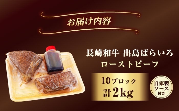 - 【ローストビーフ】A5長崎和牛出島ばらいろローストビーフ2kg(約200g×10) 長与町/岩永ホルモン [EAX190] 肉 長崎和牛 ローストビーフ A5 長与町 長崎県 国産 小分け タレ付き 真空包装