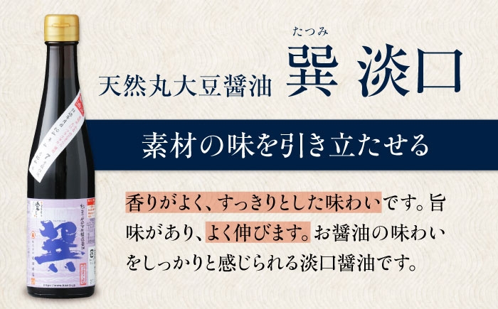 醤油 天然丸大豆醤油巽セット(淡口 濃口)300ml×各2 計4本 こいくち醤油 うすくち醤油 しょう油 万能調味料 和食 刺身 寿司 冷奴 焼き魚 煮物 炒め物 美味しい おいしい 調味料 醤油 しょうゆ セット 詰め合わせ 食べ比べ 国産 料理 つけ醤油 かけ醤油 おすすめ 人気 お取り寄せ 送料無料 贈答 ギフト 食卓 備蓄 愛媛県大洲市/株式会社梶田商店[AGBB028]