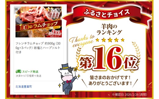 フレンチラムチョップ 約900g (300g×3パック) 岩塩とハーブソルト付き