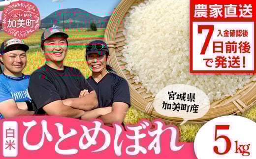 【精米】【5kg】 米 宮城県産 ひとめぼれ 《 令和7年産 新米 》 ブランド米 白米 精米 ご飯 ごはん コメ こめ お米 小分け 家庭用 結心ファーム [ 宮城県 加美町 ] | yu-hb05-r7