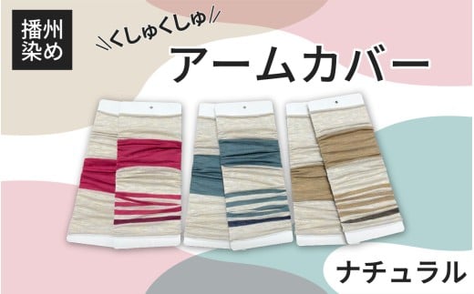 播州染め くしゅくしゅアームカバー ナチュラル系(ピンク系)/ ファッション 小物 オリジナル 自社 糸染め 編みたて プレゼント 配色 アクセント