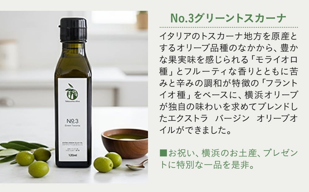 横浜オリーブ No.3グリーントスカーナ エクストラバージンオリーブオイル120ml
