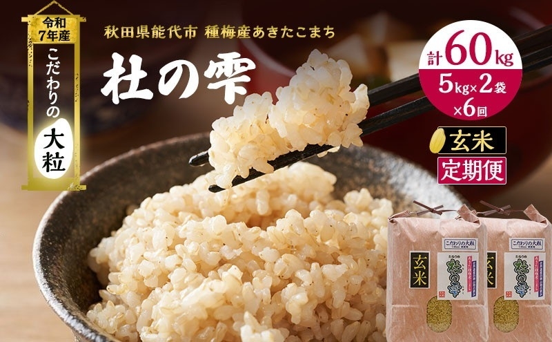令和7年産 米 お米 《定期便6ヶ月》【玄米】秋田県産 あきたこまち あきた種梅産こまち 杜の雫 こだわりの大粒 10kg(5kg×2袋)×6回 合計60kg