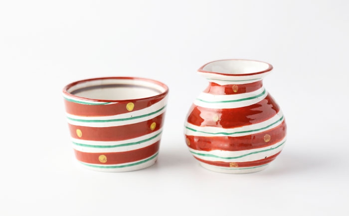 - 【美濃焼】赤絵二色渦 そばセット 【TOKI MINOYAKI/カネマス陶器】食器 そば猪口 薬味皿 [MEE142]
