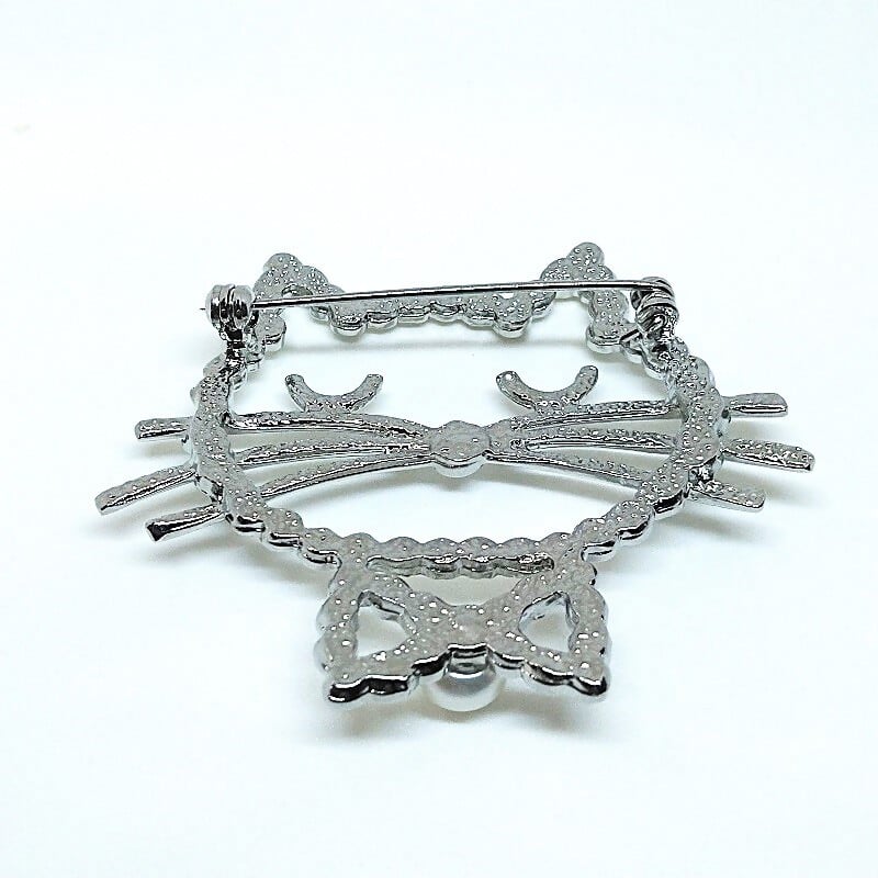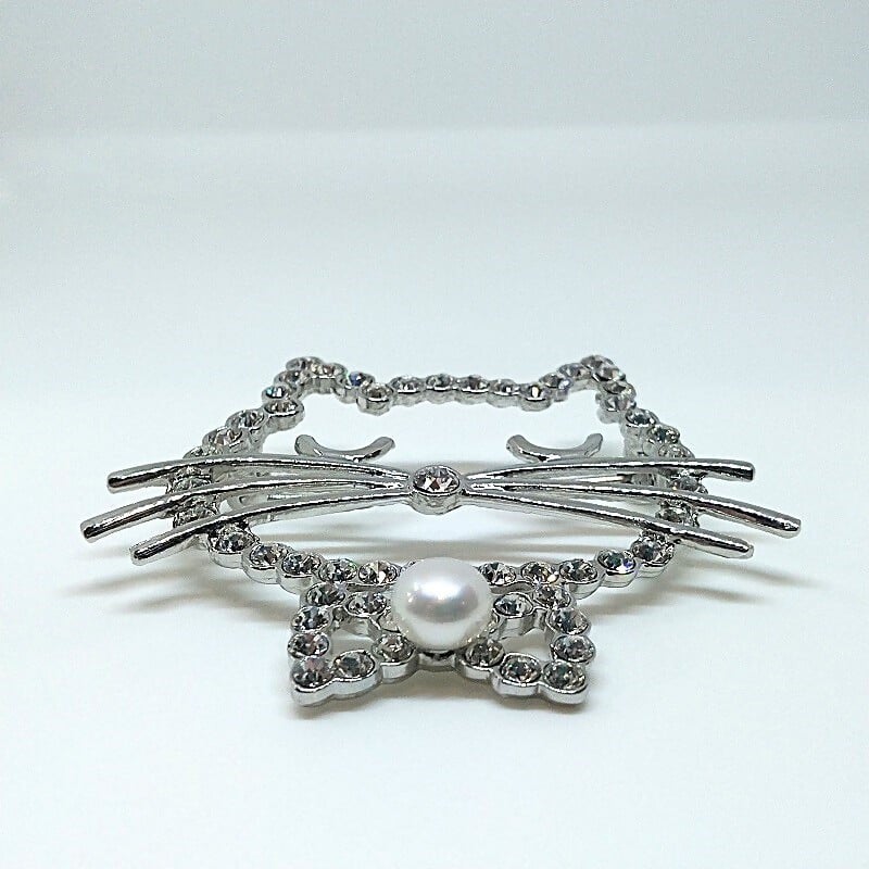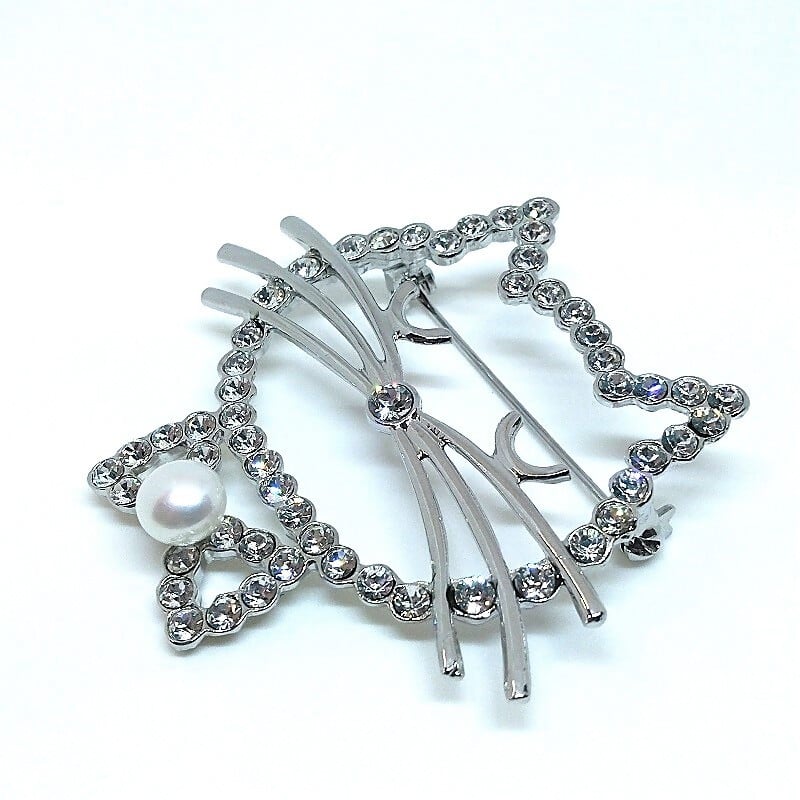 1970 ブローチ・大きなネコ(淡水本真珠・ボタン)R ブローチ 真珠のブローチ 猫 ネコのブローチ 淡水真珠 大きなブローチ 贈り物 かわいいアクセサリー ネコのアクセサリー カジュアルアクセサリー キラキラキャット