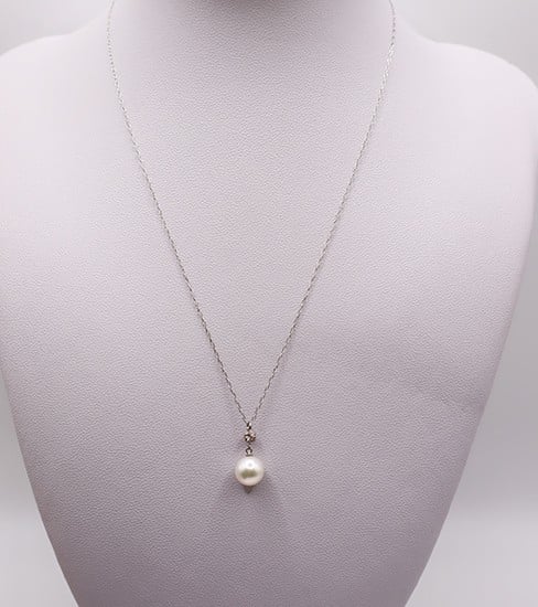 - 1931 Pt あこや本真珠 7.0㎜up ダイヤモンド0.09ct ペンダントネックレス