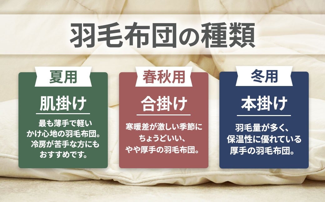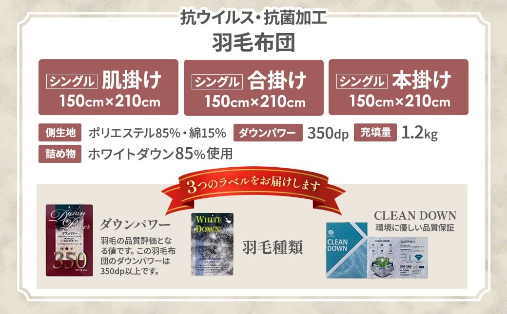 - 【掛け布団】羽毛 掛けふとん 選べる厚さ3種類 抗ウイルス・抗菌加工 (シングル:150㎝×210㎝) ホワイトダウン85% 羽毛ふとん 布団 山梨県 甲斐市 BZ-P-03