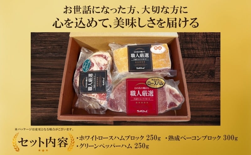 スペシャルハムギフト3品 ホワイトロースハム250g ベーコン300g グリーンペッパーハム250g 熨斗あり 国産 自家製 豚肉 肉厚 ブロック ハム ベーコン ジューシー グリーンペッパー 天然塩 香辛料 桜 チップ スモーク 夕食 ご飯 おかず おつまみ お弁当 お酒 冷凍 送料無料 サンライズファーム 千葉県 香取市 KTRAJ016-noshi