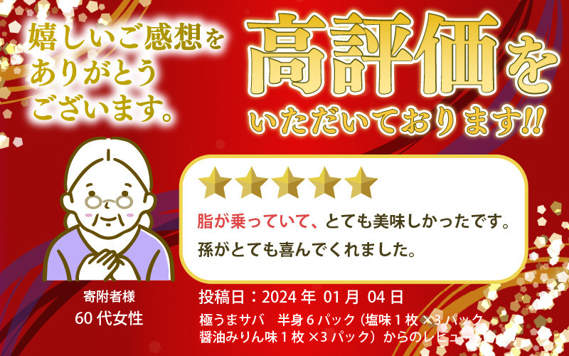 - 干物 鯖一夜干し 極うまサバ 半身3パック (塩味1枚×2パック 醤油みりん味1枚×1パック)【福井 天然 さば 日用 使い ひもの 冷凍 小分け 個包装 真空パック ご飯のお供 酒の肴 食べ比べ セット】[m17-a080]