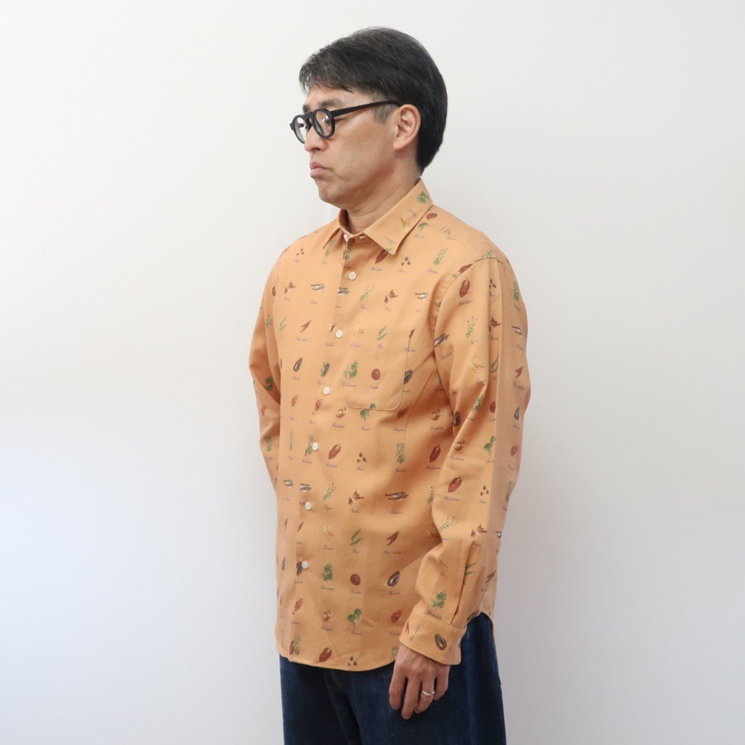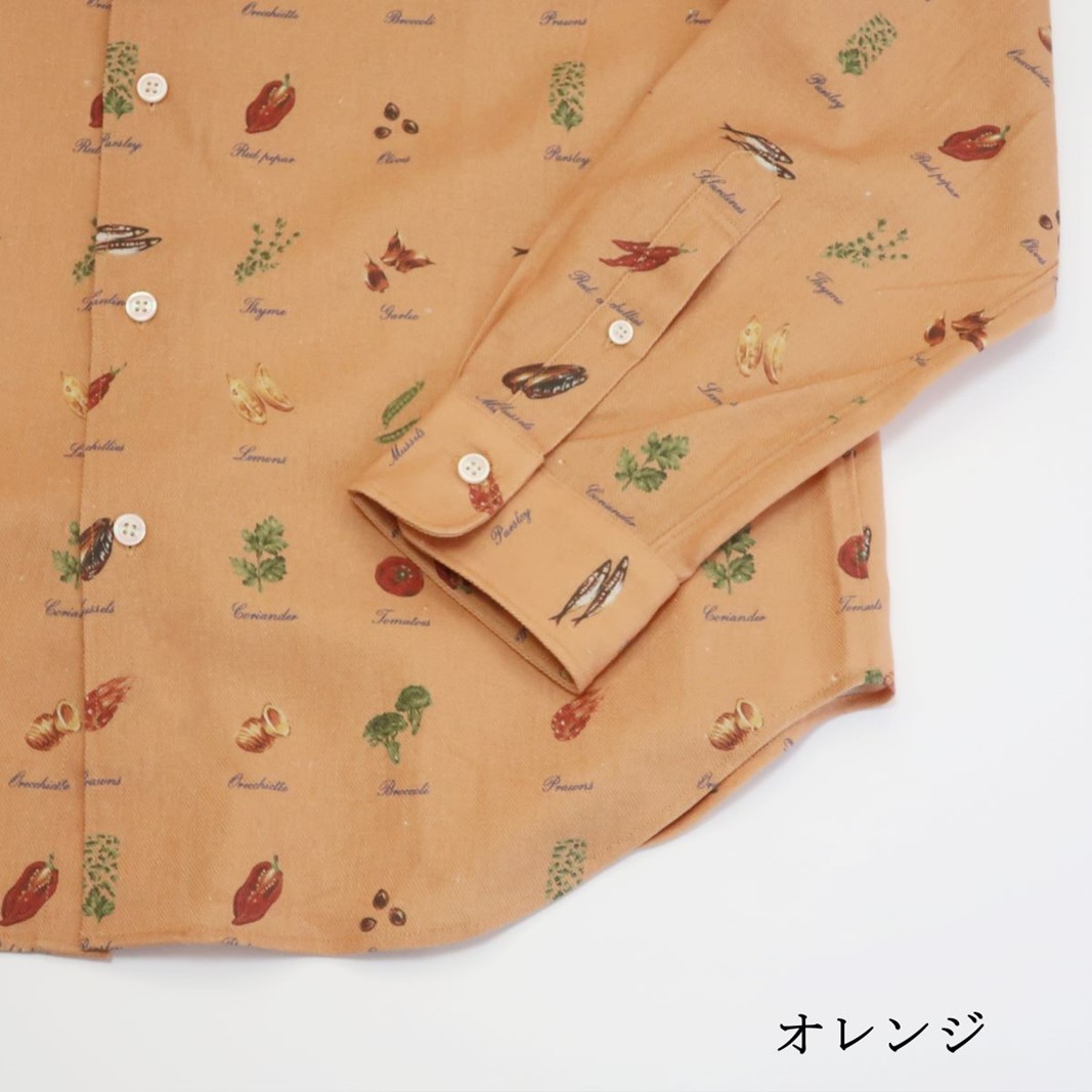 - CLOFT 長袖プリントシャツ”イタリアン食材” 綿麻ツイル(C/#56 オレンジ) M 長袖 シャツ Tシャツ 衣服 洋服 ファッション 綿 麻 ツイル イタリアン食材柄 食べ物モチーフ メンズ レディース 柄シャツ リネンコットン デザインシャツ おしゃれ ユニーク柄 トップス カジュアル 新宿 0139-012-S07-3