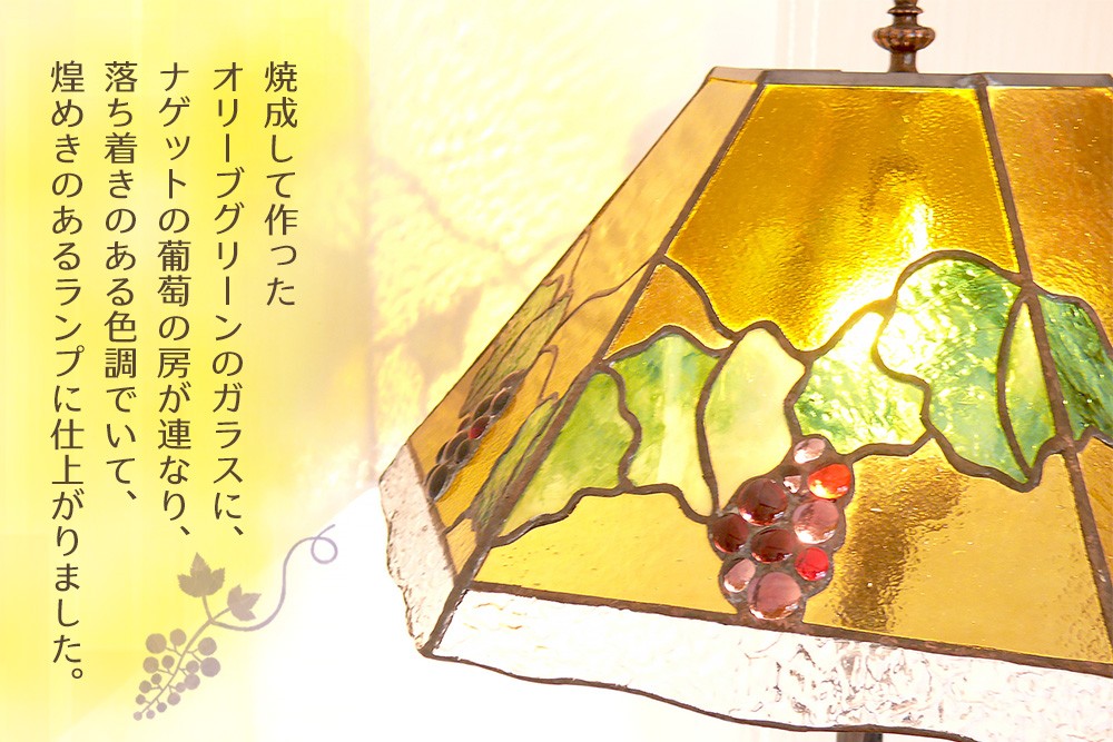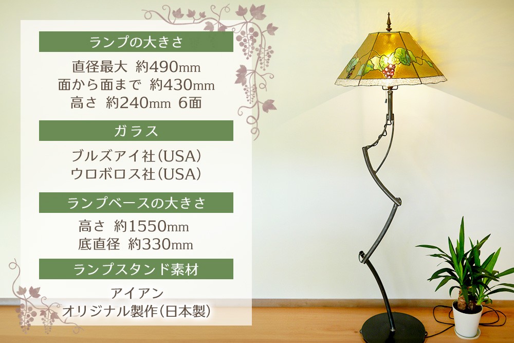 - 【チョイス限定】ステンドグラス フロアースタンド(葡萄ランプ)【1点もの ぶどう 葡萄 リビング フロアー 客間 洋室 応接室 スタンド シック オリーブ色 アイアン 新築祝 お祝】K003144