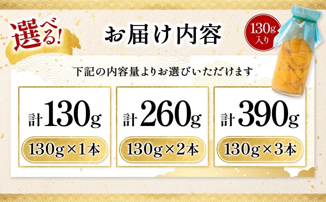 無添加生うに大瓶 130g 選べる本数 ( 1本 / 2本 / 3本 ) ミョウバン不使用 _ 岩手県 宮古市 うに ウニ 雲丹 生うに 寿司 すし 牛乳瓶